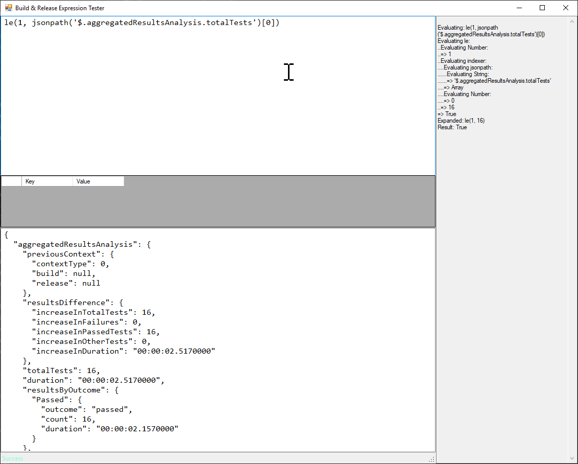 }I then used my Server Expression Tester to create the correct condition to pass or fail the build using the above information.