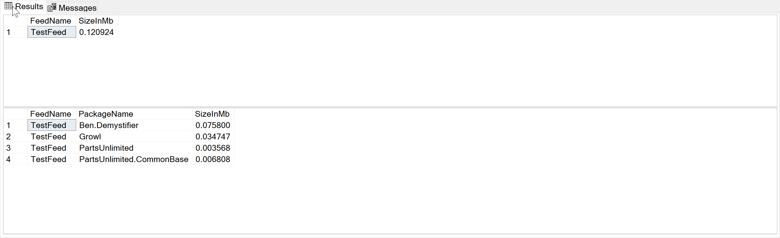 order by SizeInMb descThe outcome is a list of feeds and their total consumption as well as a list of feeds decomposed by the different packages in that feed.