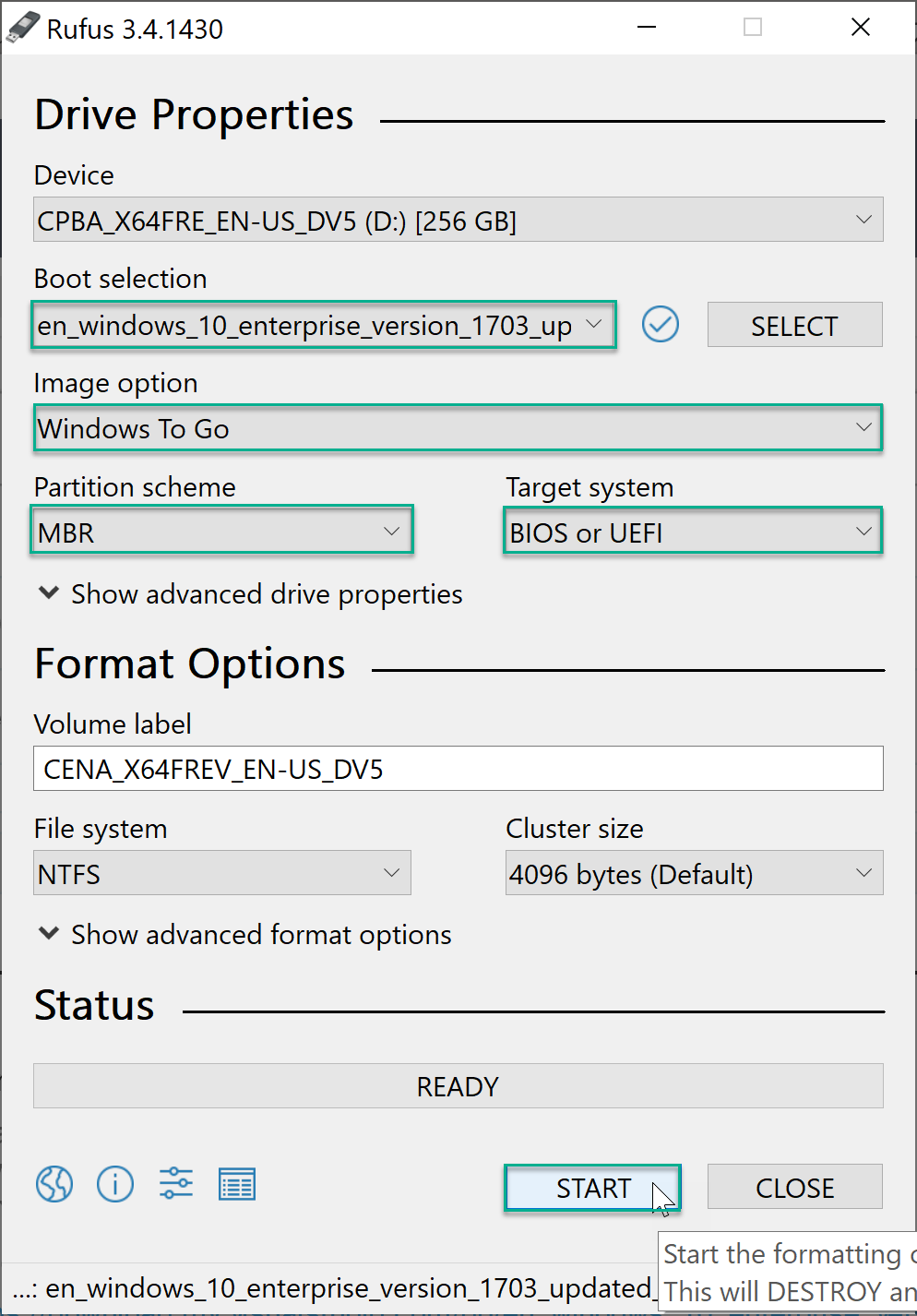 - Have a Windows-to-go compatible USB key. I've used this one: