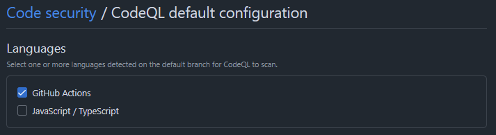 build-mode: noneThis will detect a number of GitHub Actions vulnerabilities, including:
