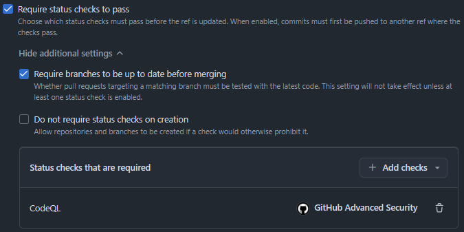 This is also a prerequisite for other protections, like requiring Code Scanning Results before merging.