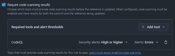 And require Code Scanning results: