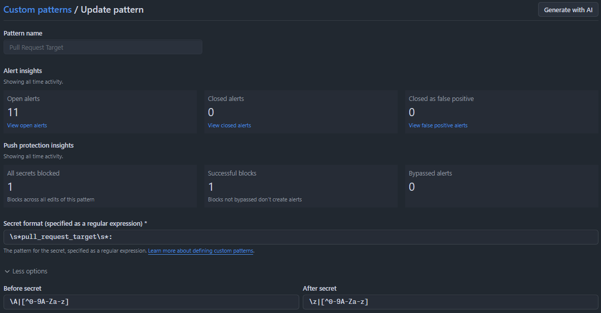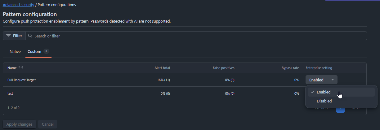 And we enabled this pattern for Push protection: