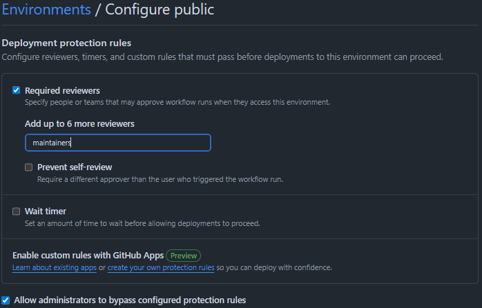 Optionally add Required Reviewers to prevent access to the secrets without manual approval: