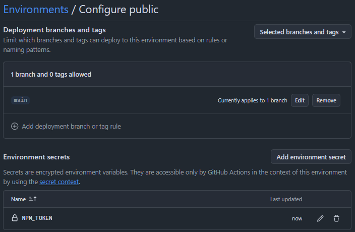 Because the NPM token was stored as a repository secret, access to it would not require an explicit approval.