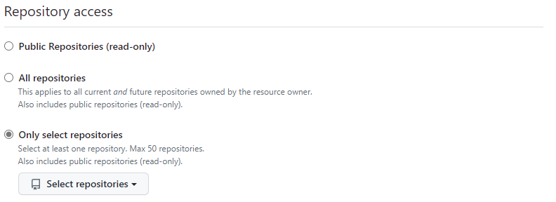Limit the token to Only select repositories: