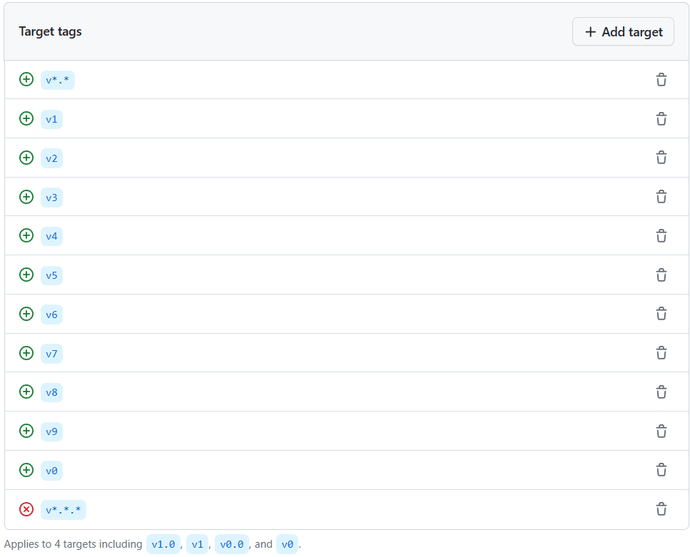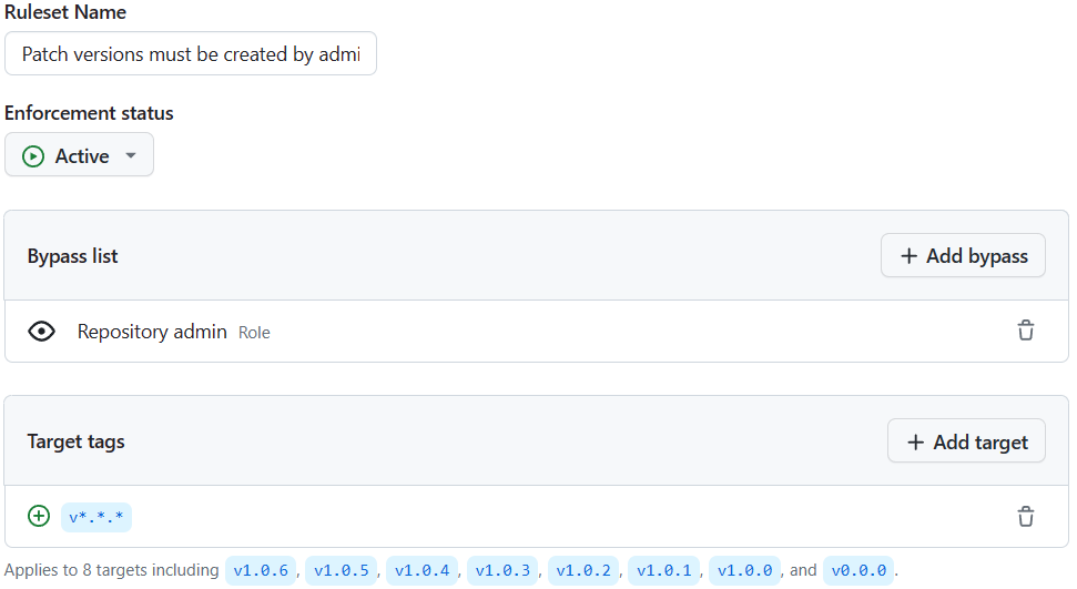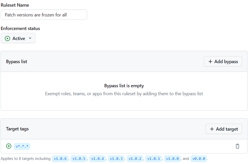 - Patch versions are frozen for all - Apply this rule to target tags