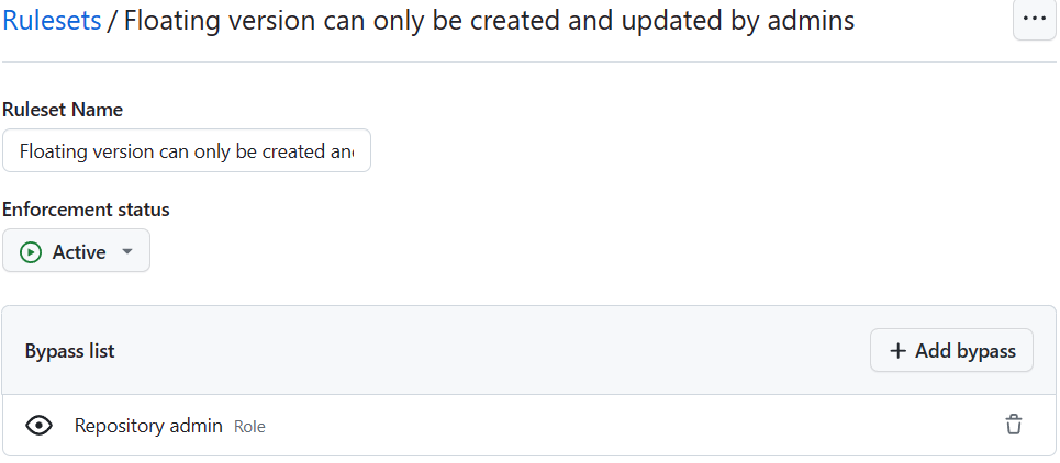 - Patch versions must be created by admins - To limit the number of people who can publish a new version of an action, limit the creation to admins only. Apply this rule to