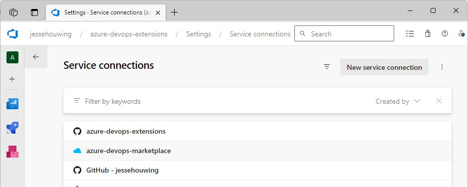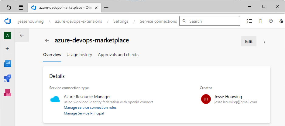Now we'll need the Id of the Visual Studio marketplace service connection.