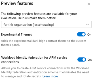 Allows you to create ARM service connections with the Workload Identity federation authentication scheme. It eliminates the need to manage and rotate secrets. Learn more.