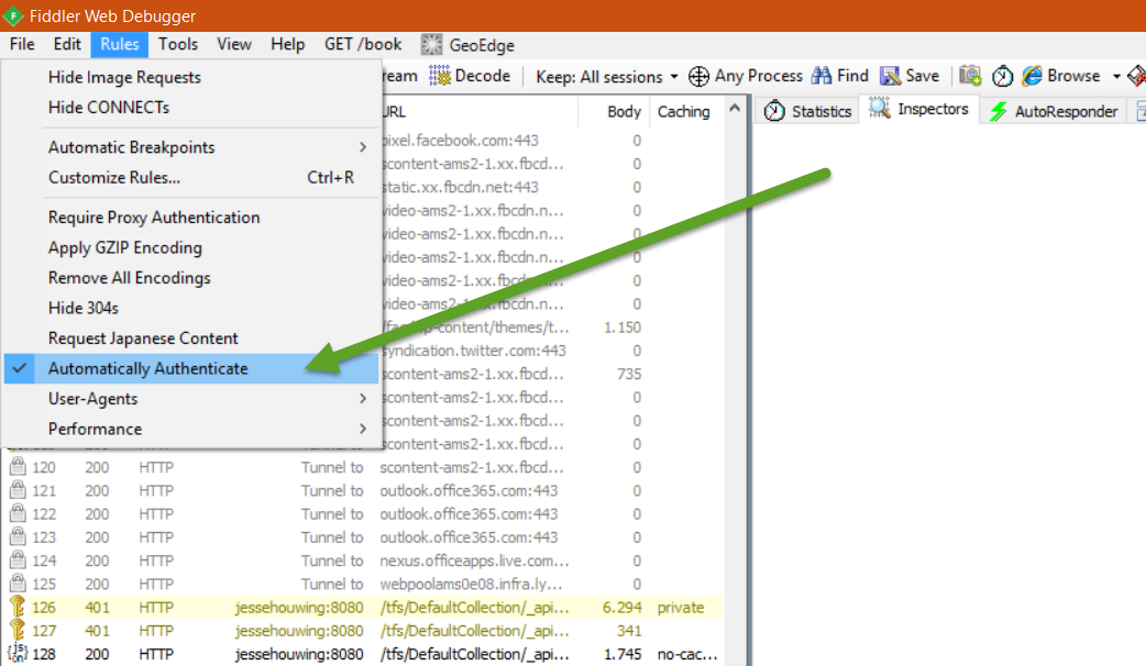 You'll be prompted for a username and a password, it doesn't really matter what you enter, fiddler will handle the authentication for you in the background: