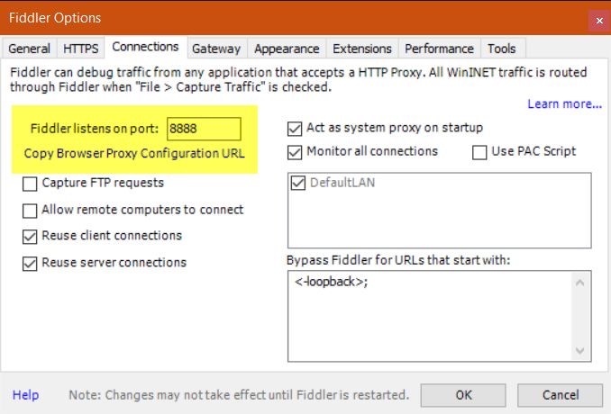 Now open the command prompt and configure the proxy using an environment variable to instruct Node.js to use Fiddler as a proxy server, the default is port 8888: