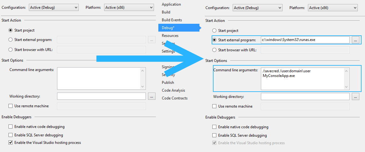 Visual Studio Tip: How to always launch the debugger under a different user profile
