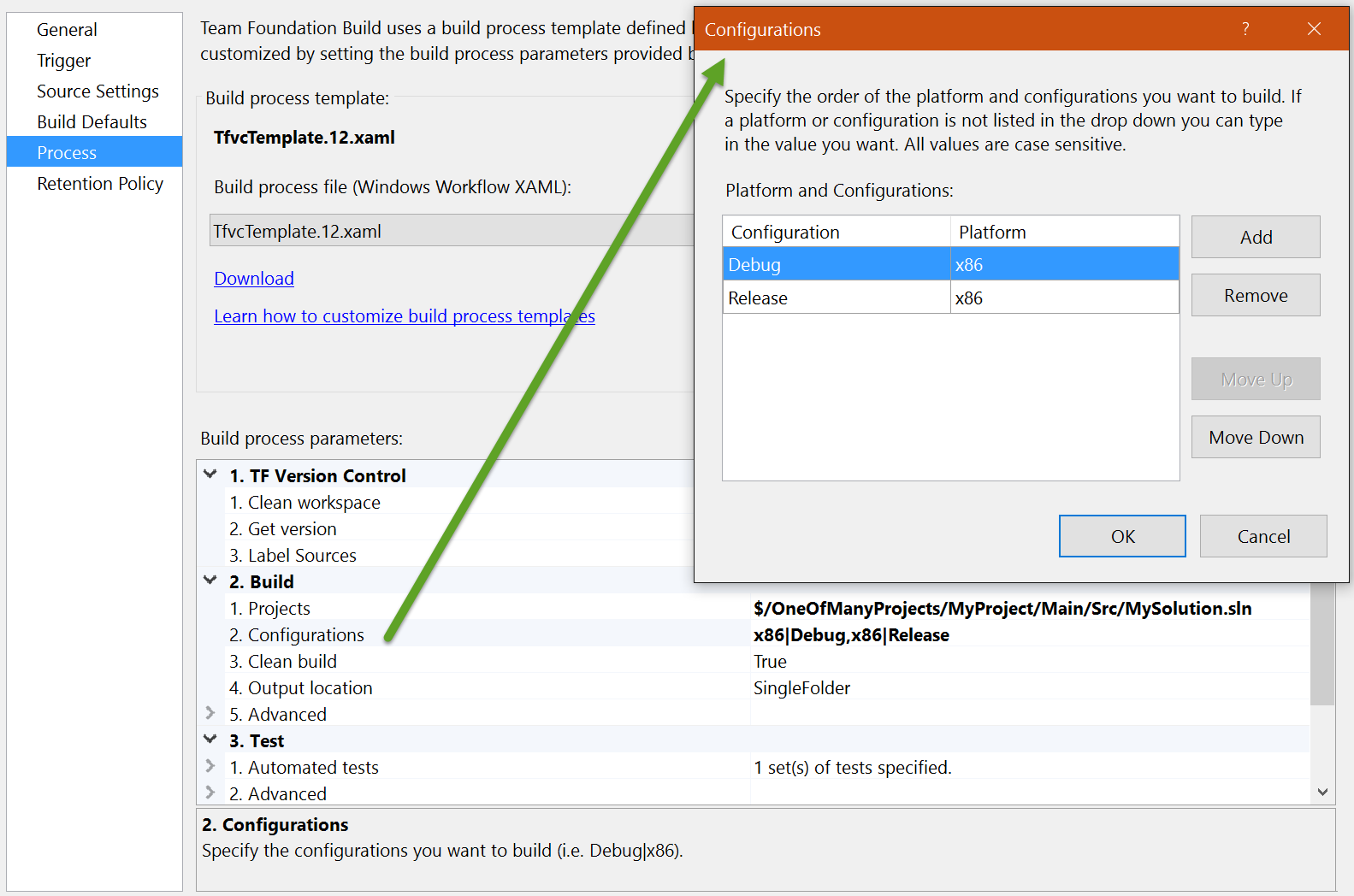 Concluding, you can build multiple configurations easily as you could with XAML builds. The only big change is that you cannot specify unique combinations of variables. Build 2015 will always build all permutations of the variables specified.