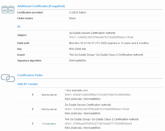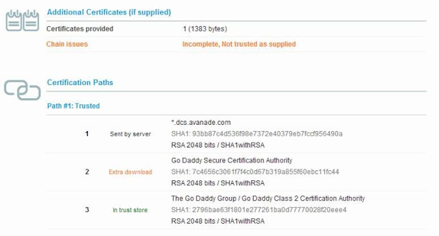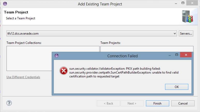 It is a better solution to actually have the underlying issue fixed. The fact that the certificate chain, as served by the server, is broken. After following all the steps on the TFS server and the SSL Appliance to make sure both serve the correct certificate chain, we can now connect Team Explorer Everywhere to TFS without any issues. After this change you should now see the following data on SSL Labs: