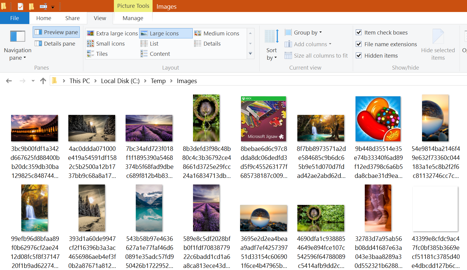 C:\Users\me\AppData\Local\Packages\Microsoft.Windows.ContentDeliveryManager_cw5n1h2txyewy\LocalState\Assets> copy *.* c:\temp\Images\*.jpg